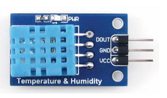 Ortamdaki sıcaklık ve nem değerlerini algılayarak, sinyal çıkışı veren sensördür. DHT11 sekiz bit mikroişlemci içerir. Ortamdaki havayı ölçmek amacıyla bir kapasitif nem sensörü ve bir termistör kullanmaktadır. 0 ile 50 °C arasında 2 °C hata payı ile sıcaklık ölçer ve 20-90% RH arasında 5% RH hata payı ile nemi de ölçebilmektedir.